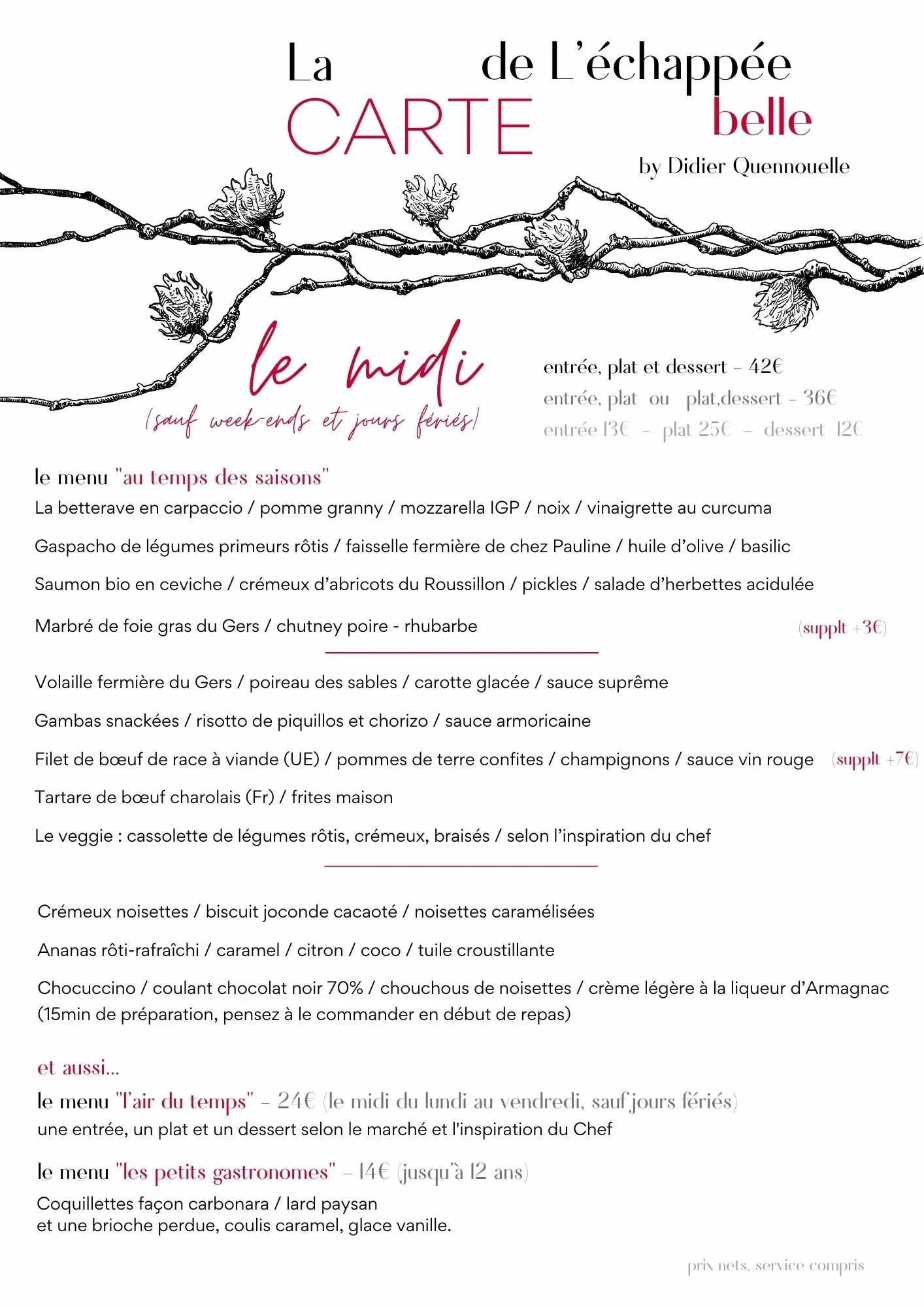 En cuisine, c’est Didier QUENNOUELLE qui officie depuis peu. Arrivé chez nous récemment, il a pris la tête d’une brigade de 5 cuisiniers. Son parcours auprès de grands noms de la gastronomie française va l’amener à vous proposer une cuisine bistronomique, raffinée, créative et éclectique qui puise ses inspirations dans ses voyages et ses rencontres. Il aime revisiter les grands classiques mais aussi explorer toutes les facettes d’un terroir, suivre les saisons et mettre en valeur les produits régionaux qu’il sélectionne avec soin.